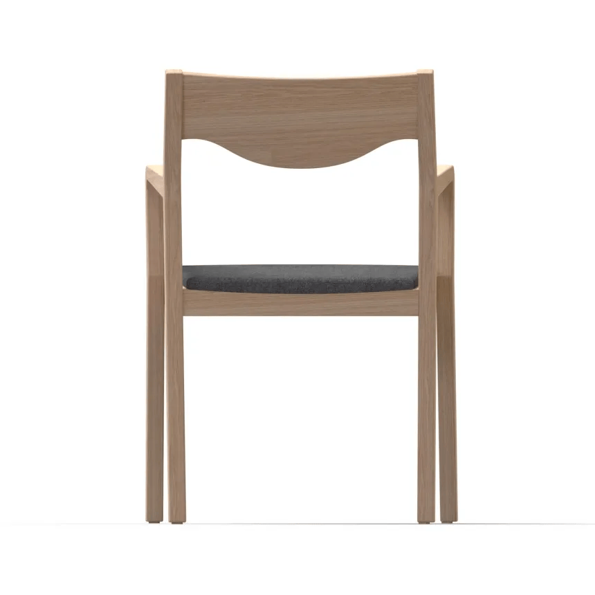 肘掛けは手前側へ少し上向きにあがるような角度をとっております。深く座ってリラックスする際に心地よい角度です。